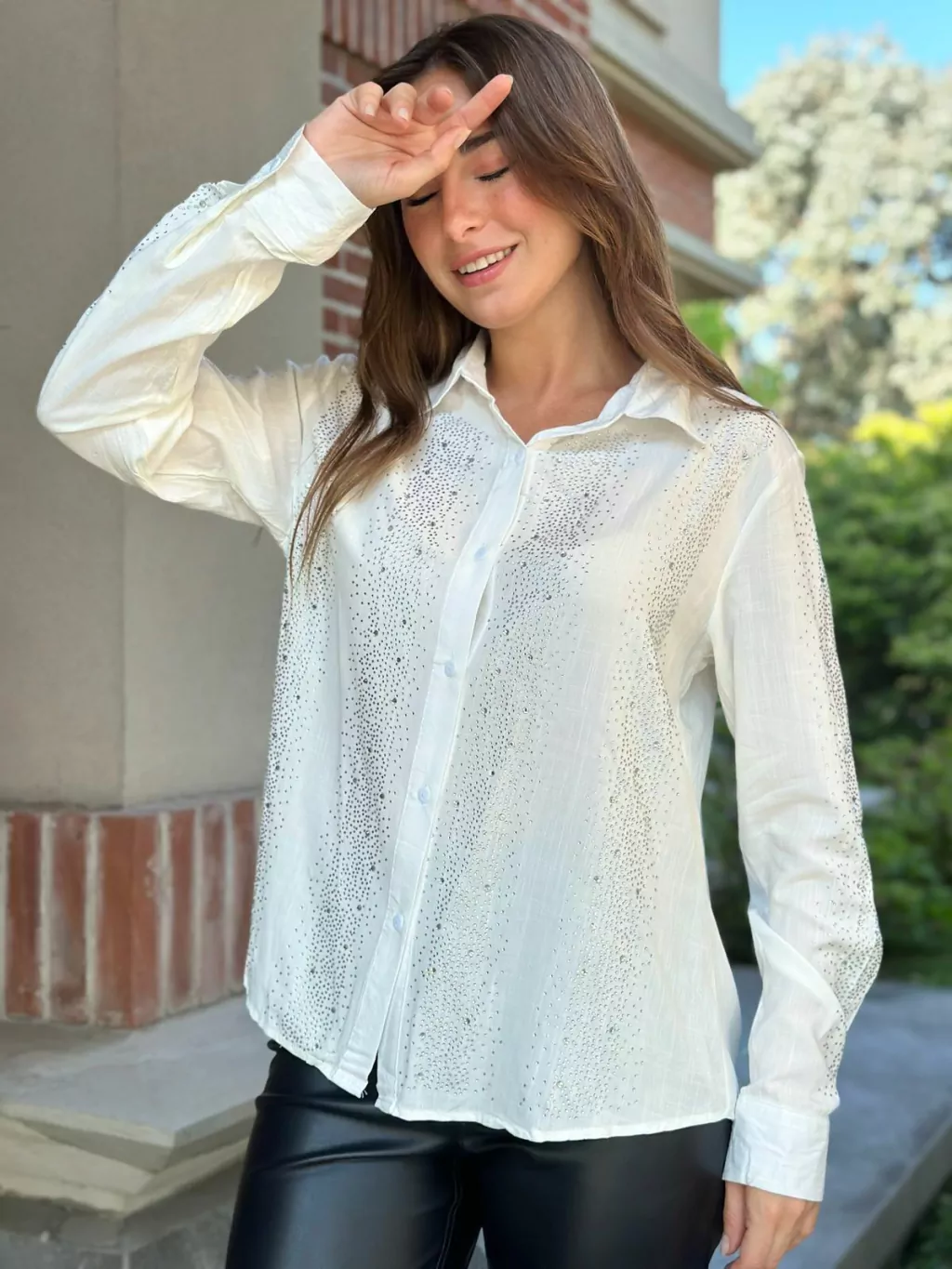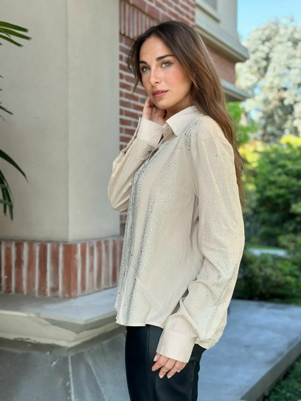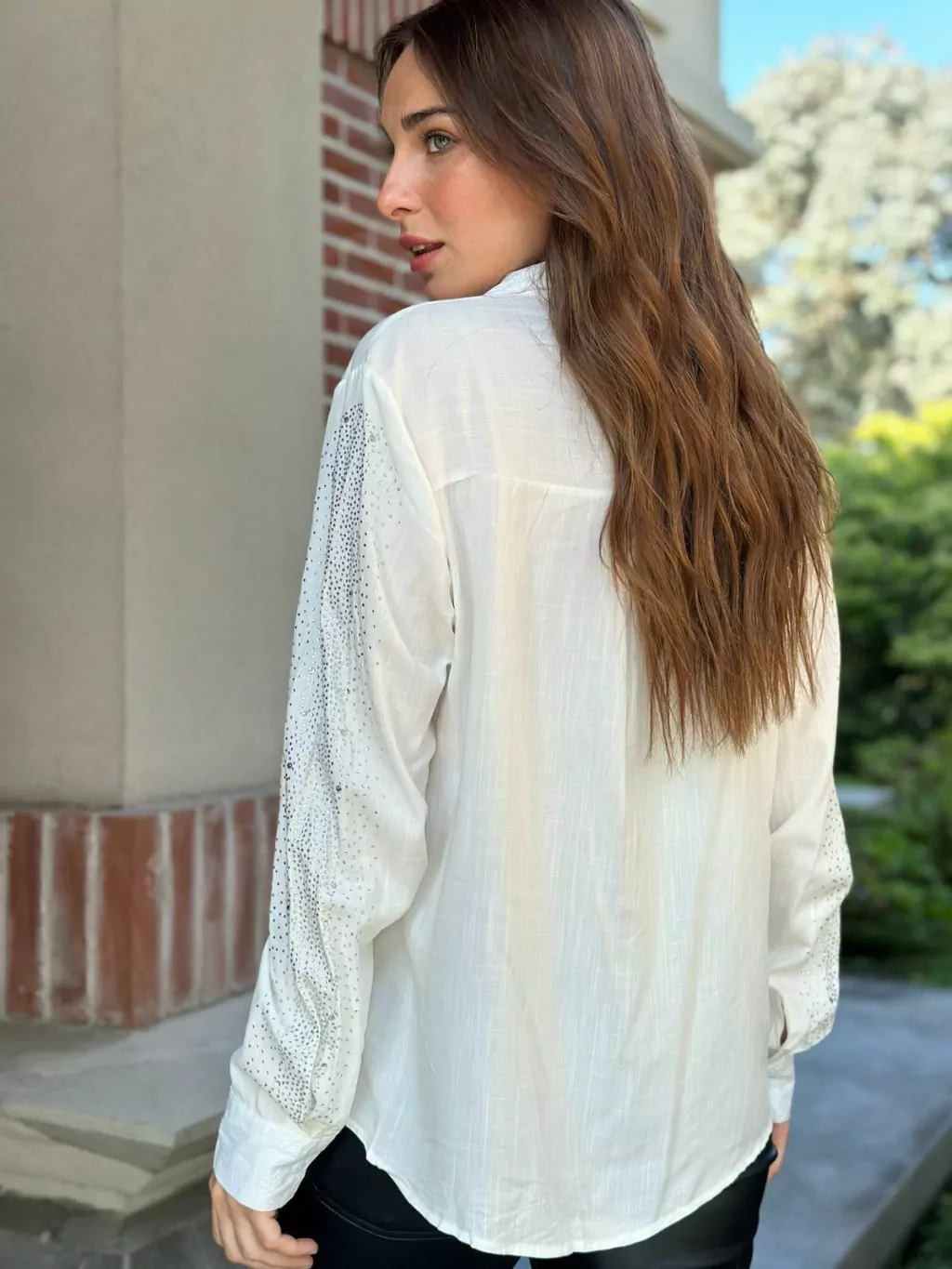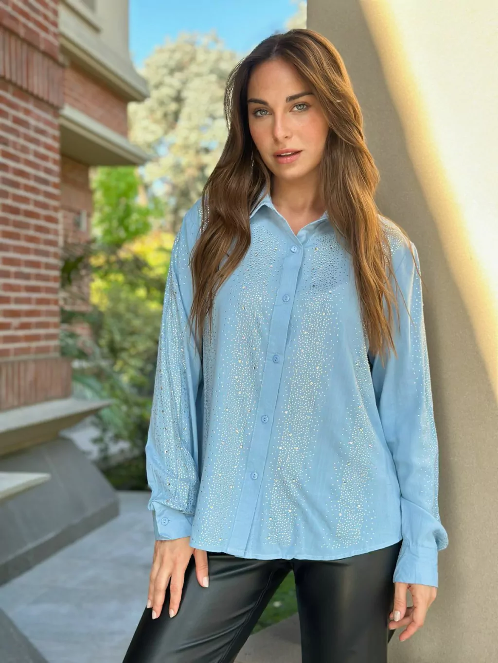 Camisa Premium Piedras con Apliques Strass en Frente y Mangas. Medidas Aproximadas: Talle M Sisa 53 cm Largo 60 cm, Talle L Sisa 55 cm Largo 62 cm y Talle XL Sisa 57 cm Largo 64 cm.