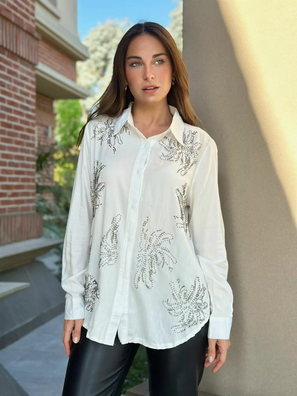 Camisa Premium de Fibrana con Aplique Canutillos. Medidas Aproximadas: Talle M Sisa 56 cm Largo 70 cm, Talle L Sisa 58 cm Largo 72 cm y Talle XL Sisa 60 cm Largo 72 cm.