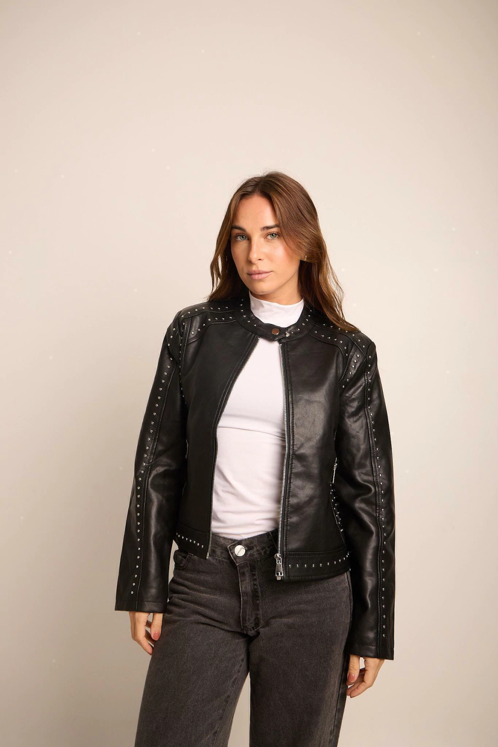 Campera Premium de Ecocuero con Tachas y Bolsillos. Medidas Aproximadas: Talle M Sisa 48 cm Largo 53 cm, Talle L Sisa 49 cm Largo 54 cm y Talle XL Sisa 50 cm Largo 55 cm.