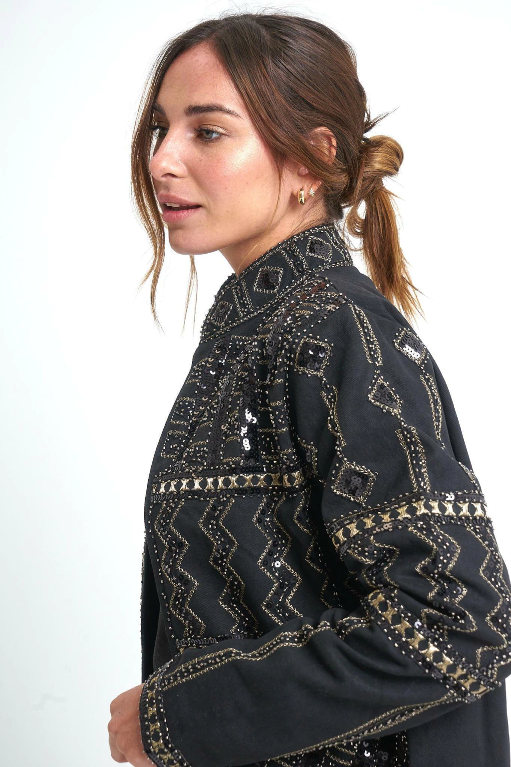 Chaqueta Premium Forrada con Lentejuelas Bordadas. Medidas Aproximadas: Talle S/M Sisa 50 cm Largo 57 cm y Talle L/XL Sisa 53 cm Largo 59 cm.